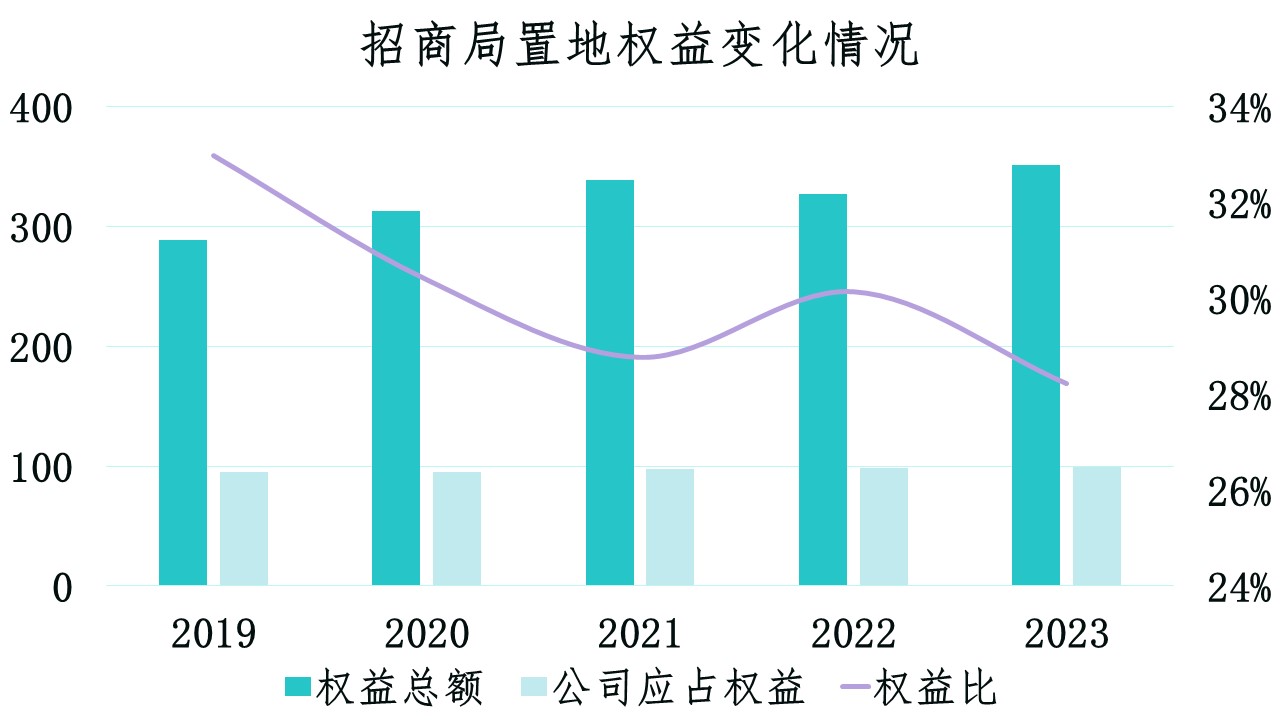 从目前情况看,该策略收效尚待时日。截至2023年末,招商局置地归母净利润占总溢利比重为10.62%,公司应占权益比为28.22%,两项数据均为近五年新低。