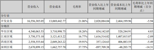 该年招商蛇口于上海获取的土地达到10宗,且多数为当年拿地当年开盘,去化率较高,华东区域总毛利率还逆势上升4.83%,与江南、西南、深圳区域形成鲜明对比。