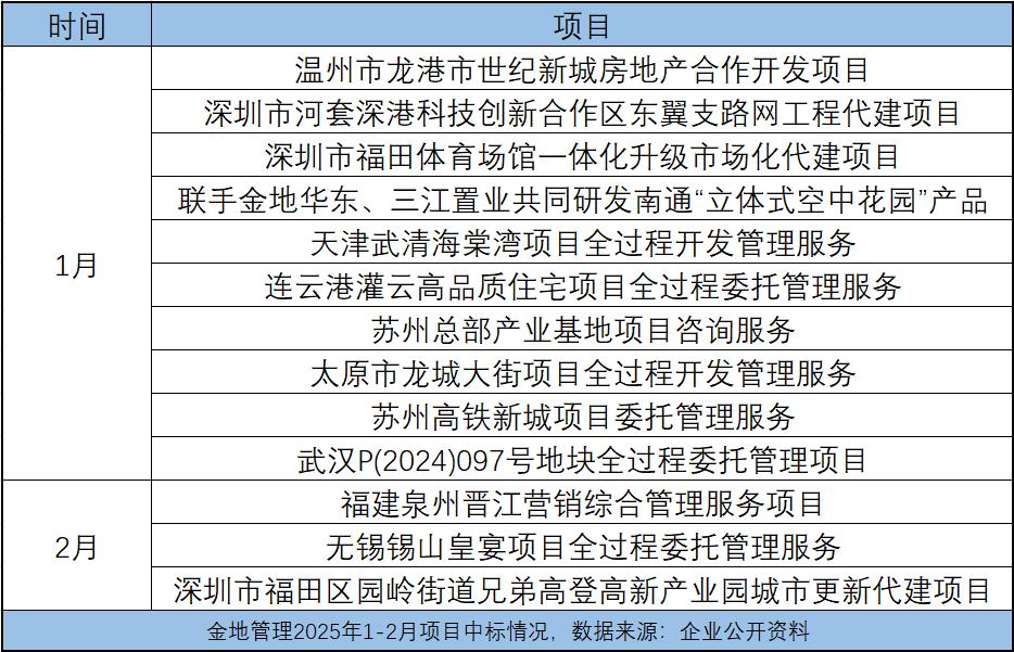 进入2025年后,金地管理继续拓展项目,提高在新赛道中的市占率。