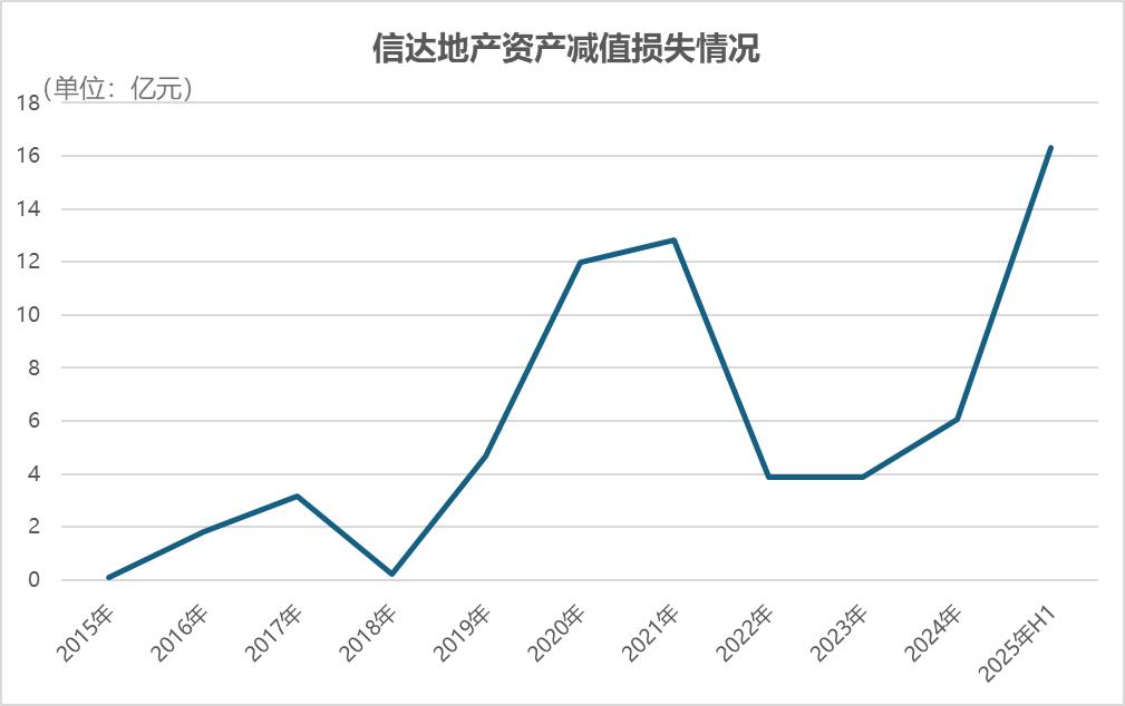 从最新披露的2025年中期财报来看,信达地产信用减值损失为9.58亿元,资产减值损失为16.3亿元。