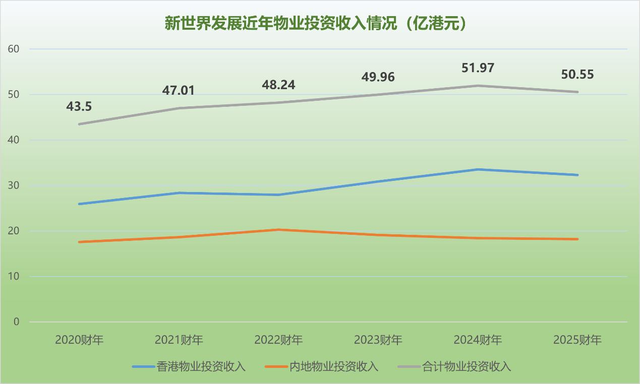 报告期内,该公司在内地实现投资物业收入18.21亿港元,分部业绩8.43亿港元。整体来看,2025财年总投资物业收入为50.55亿港元,基本维持了稳定。