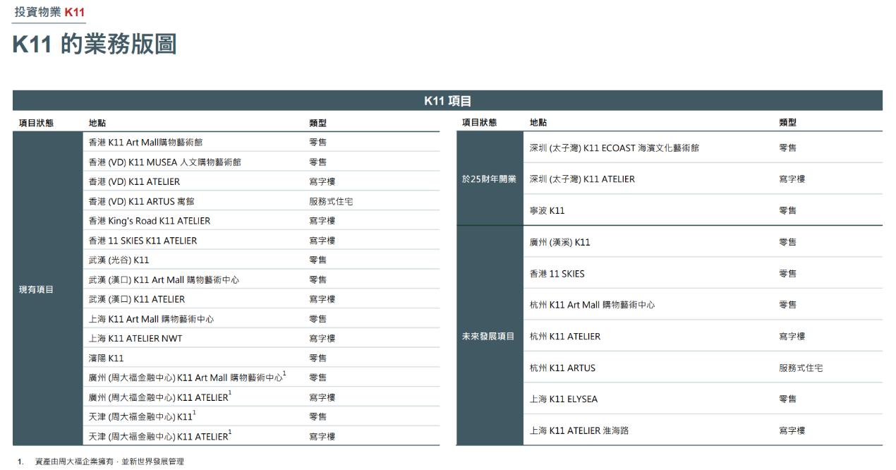 在内地,新世界发展也布局有大量投资物业,包括8个已开业运营的K11项目,如2025年4月起陆续开业的深圳太子湾K11 ECOAST。