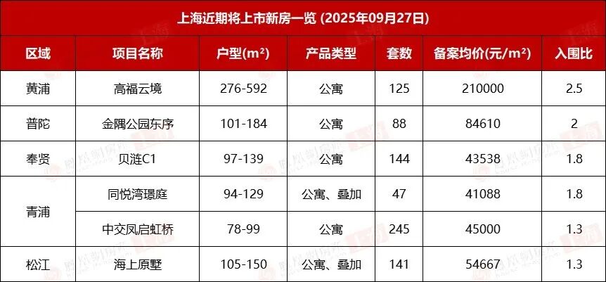 (原标题:上海本周9盘过会!高福云境21万/㎡)