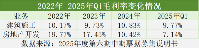 据2025年度第六期中期票据募集说明书,2022-2024年,武汉城建营收分别为580.81亿元、641.14亿元、612.36亿元,建筑施工收入占50.07%、49.07%、47.84%;房开业务占46.02%、46.85%、47.21%。