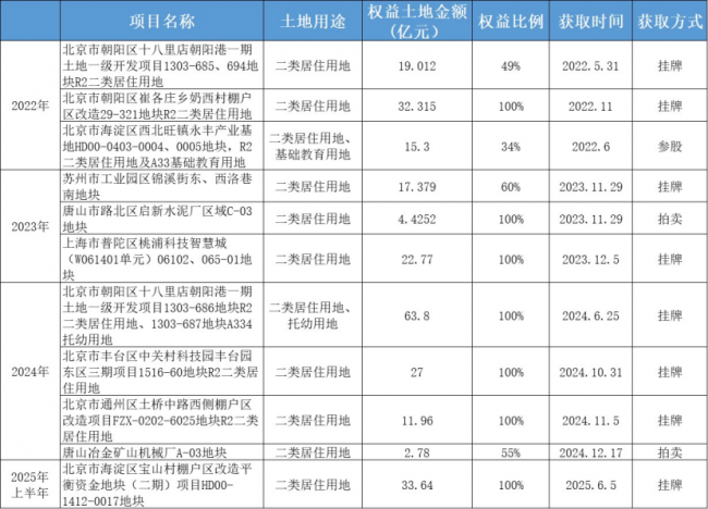 以2022年以来的新增土地储备情况来看,金隅以参股、挂牌出让等方式获取了11宗地块,权益土地金额达250.38亿元。其中,有七宗地块位于北京,朝阳区及海淀是集中布局区域。