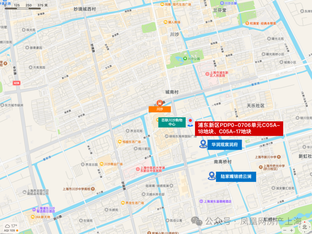 这宗引发三家房企争夺的地块,自身条件确实出众。出让面积约4.19公顷,分为两个子地块同步开发,并与西南角酒店配套整体出让。从区位来看,项目与地铁2号线川沙站直线距离仅约500米,轨道交通便捷;周边环绕百联川沙、绿地东海岸国际广场等成熟商业体,生活配套完善;教育、医疗资源也已形成系统网络,能够充分满足家庭生活的各类需求。