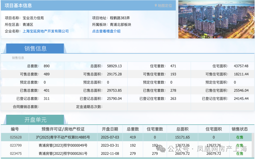 公开数据显示,宝业活力天境于2022年11月8日首开,累计推售471套房源。截至目前,上海网上房地产的数据显示其已售住宅套数仅278套,三年时间网签去化率仅59%,平均下来每个月仅售出8套房。这样的去化成绩,难免让市场对宝业此次再入青浦的决策多了一份观望。