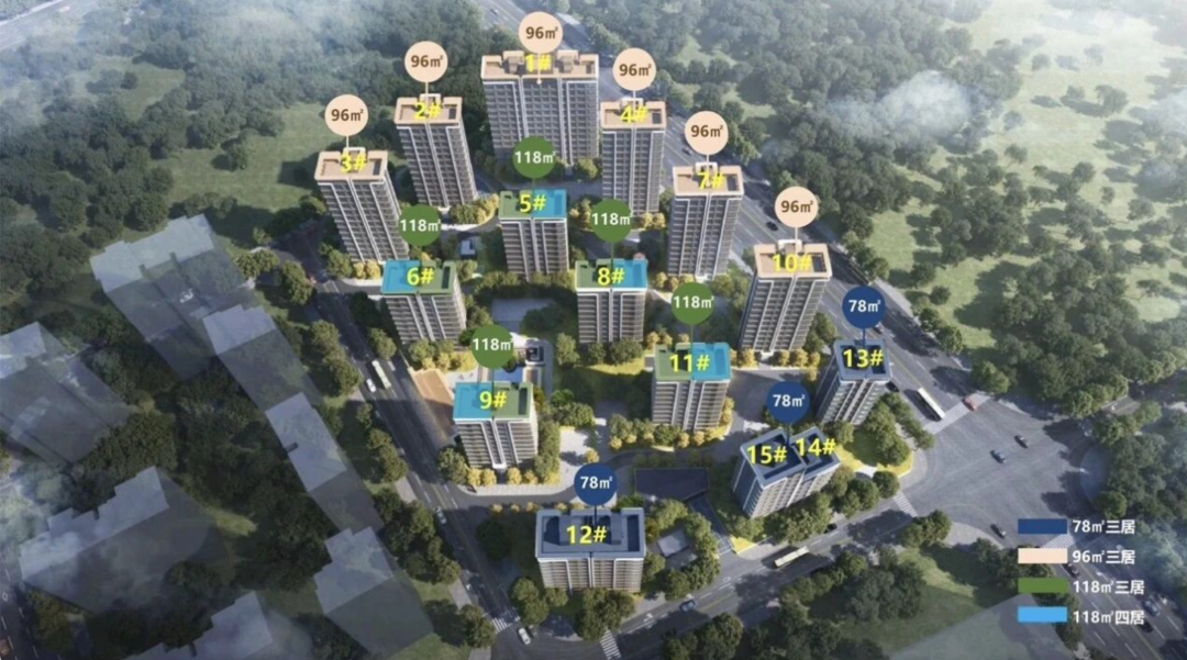 包括:78㎡的2+1小三居,96㎡南向三面宽的功能三居,118㎡南向两面宽的舒适三居。