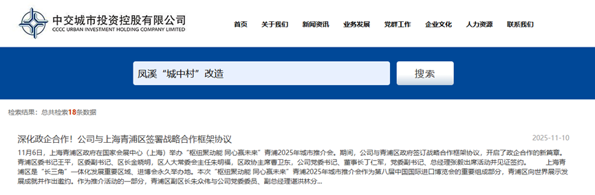 建设管理上,中交城投对凤溪“城中村”改造项目进行了多次实地走访,仅从官网披露的资料来看,中交城投三年间已对该项目进行了十余次实地调研。