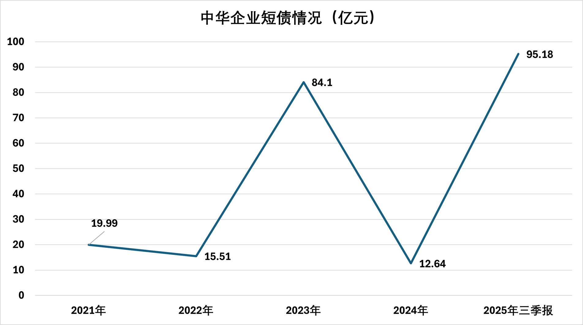 何为中华企业的增资意图?据观点新媒体了解,近年以来,中华企业短期负债情况堪忧,截至2025年三季度,一年内到期的非流动负债95.18亿元,而2024年仅有12.63亿元。