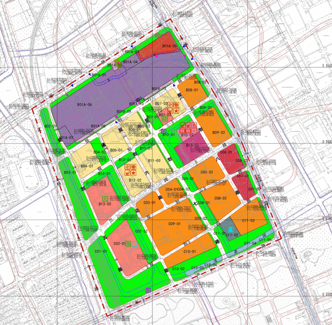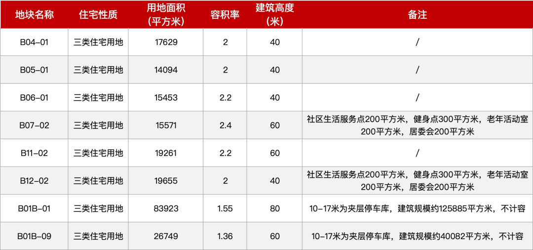 此外,另有六幅住宅地块同步规划,包括B04-01、B05-01、B06-01、B07-02、B11-02、B12-02地块,指标清晰,部分还须配建社区生活服务点、居委会等配套。