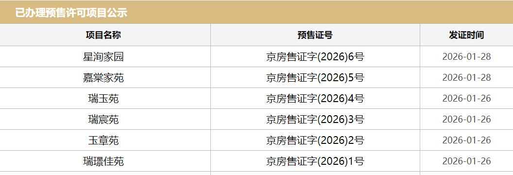 这两个项目分别是1月26日取证的瑞璟佳苑(推广案名暂未公布),以及1月28日取证的嘉棠家苑(推广案名“嘉棠璟樾”),分别位于海淀与丰台。