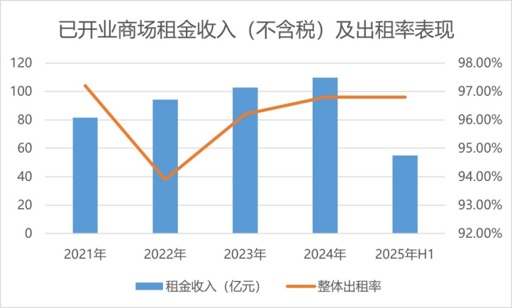 其中,运营业务主要包括商业投资和资产管理两大板块。2025年上半年,该项业务不含税租金收入为70.1亿元,同比增长2.5%。