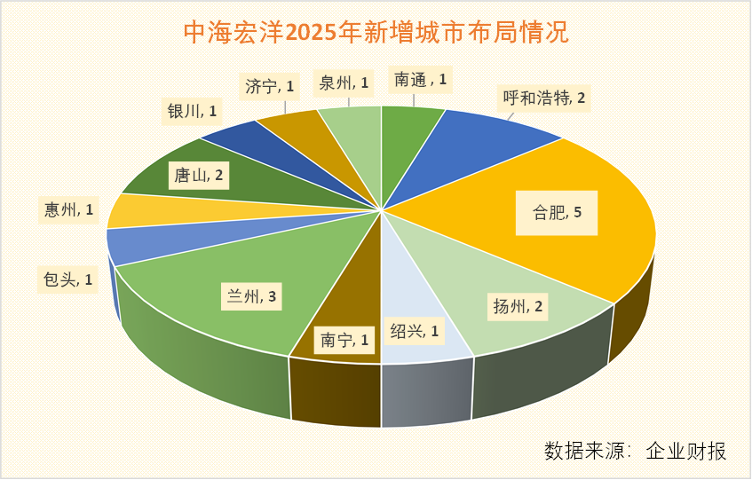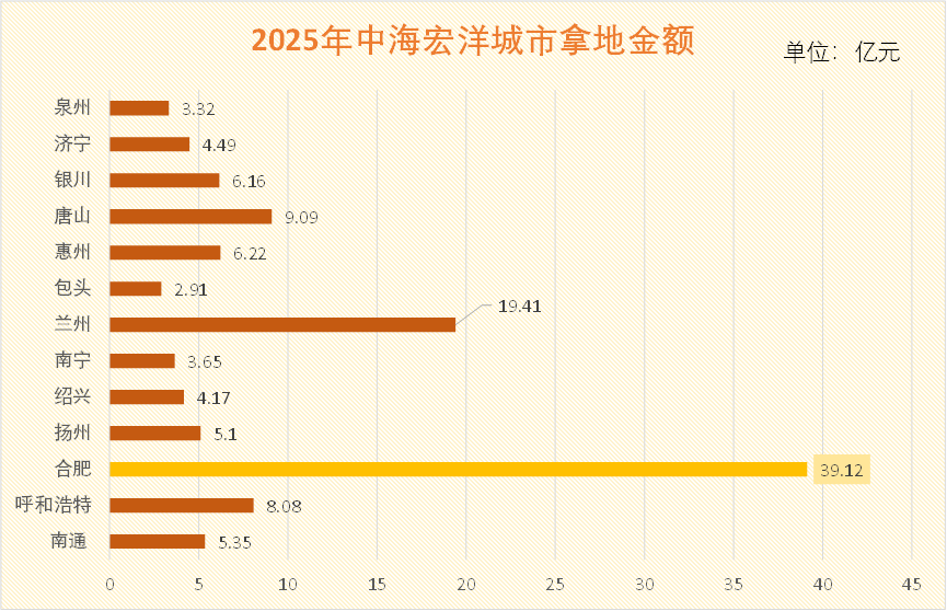 土地新增方面,2025年,中海宏洋共新增22宗地块,总土地成本为117.08亿元,共涉及合肥、呼和浩特、兰州、银川等13座城市,新增土地货值335亿元,高度聚焦二三线及下沉市场。