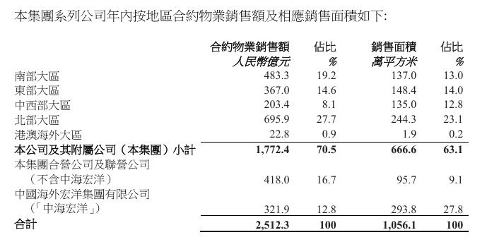 得益于上述项目“多点开花”,中海集团及合联营公司(不含中海宏洋)在香港及北上广深五个城市实现的合约销售额1254.4亿元,占总销售额比例57.3%。