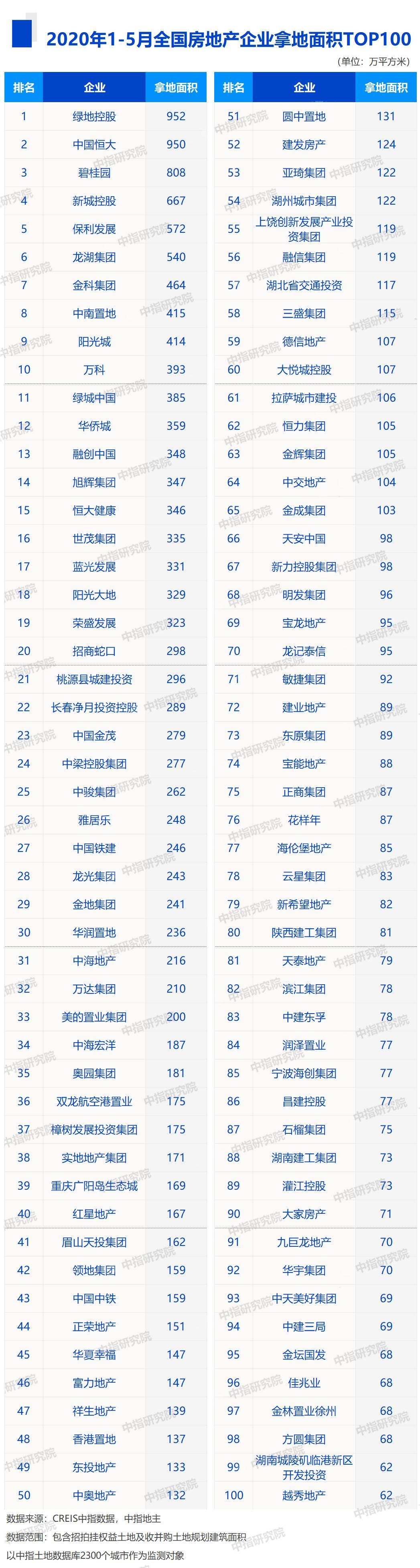 TOP100拿地面积数据