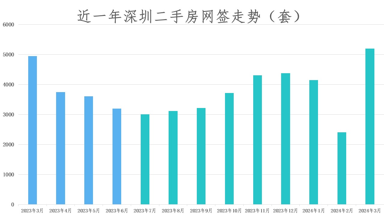 比起过户,网签数据能更快反映市场行情。深房中协小程序显示,3月深圳全市二手房网签(即合同录得量)达到5196套,环比上涨117%,同比上涨5%。这也是时隔3年月度网签量再次破5000套。