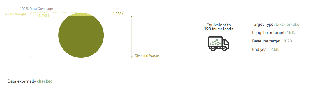 杭州平安金融中心ESG理念深度融入项目运营的各个环节,在环境维度,项目通过精细化能耗管控体系,有效降低运营成本与碳排放,积极推进垃圾分类与资源回收,以实际行动践行低碳减排目标。与基准年相比,项目实现了 1365吨 的碳排放减少,降幅为 -1.2%;总耗水量大幅减少了 26,947立方米,降幅高达 -13.3%。在废弃物管理方面表现突出,转移量约占比93%,其回收和资源化利用处于高标水平。
