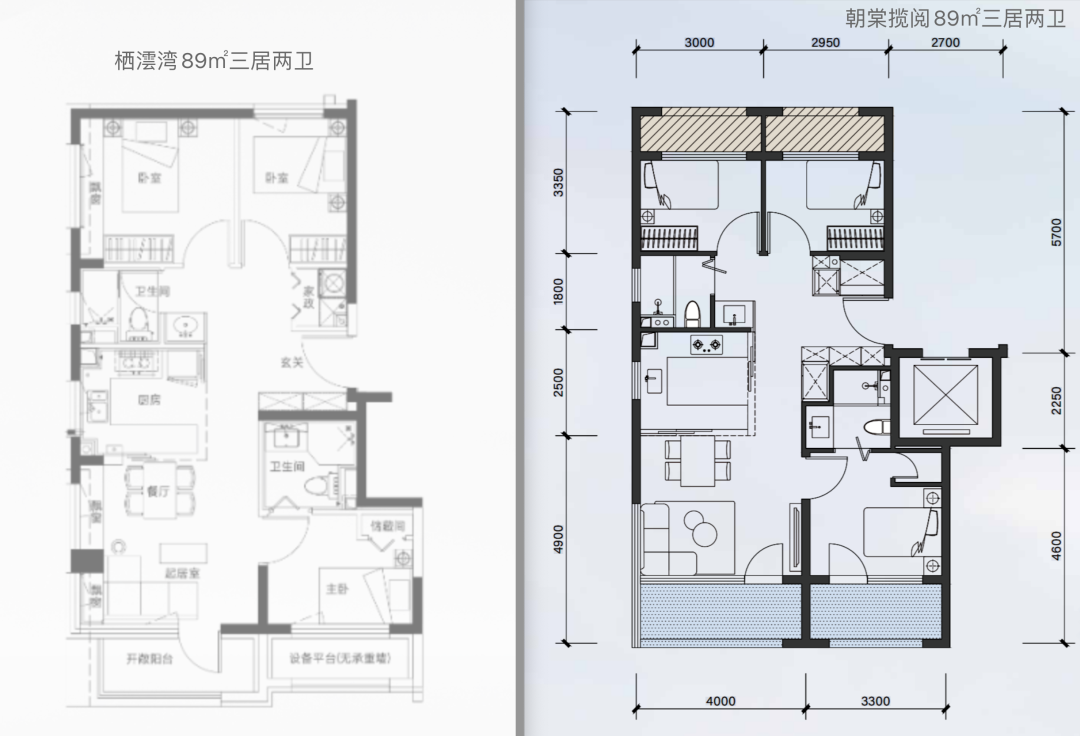 栖澐湾89㎡室内格局直接copy朝棠揽阅89㎡的爆款产品,连主卧的储物间都直接照抄了。