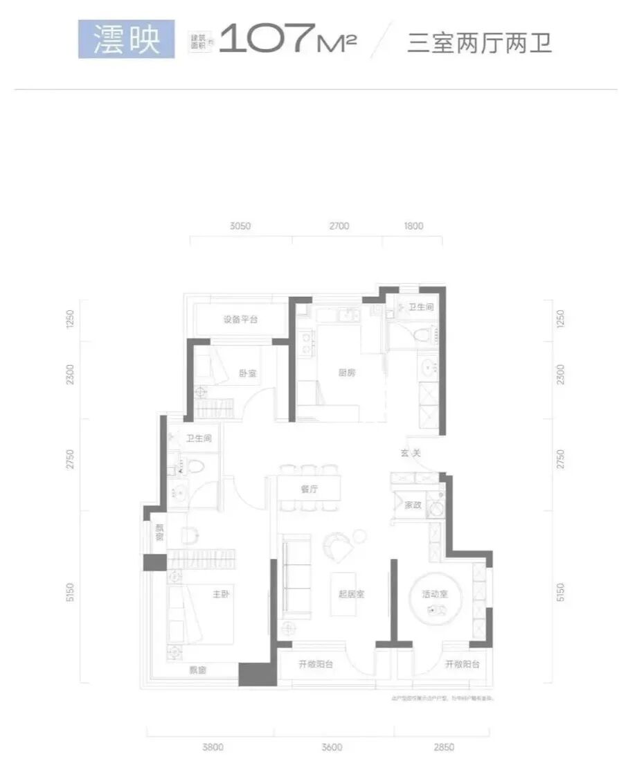 总面积虽然大于107㎡,但主卧却比人家小,客厅面宽一致,北边设备平台赠送面积也更小。