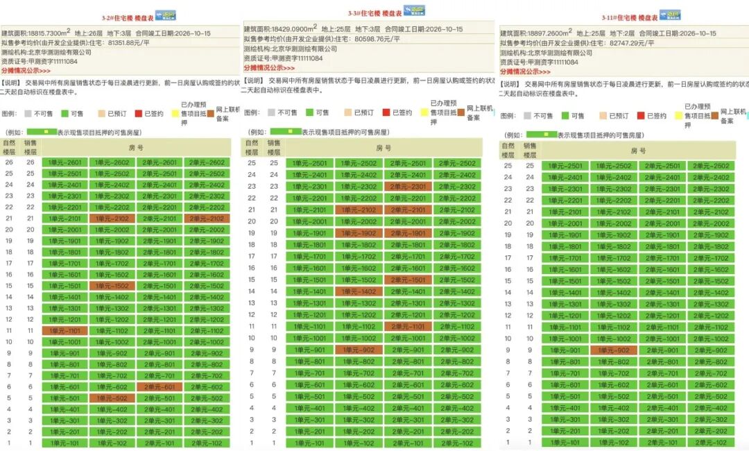 这两栋的边户是184㎡户型,中间户是169㎡户型。目前2#和3#分别有6套和9套网上联机备案。