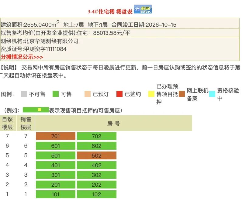 4#是164㎡户型,仅有2套网上联机备案。令人费解的是,该楼栋明明是7层洋房,但得房率低于80%,实属不应该。