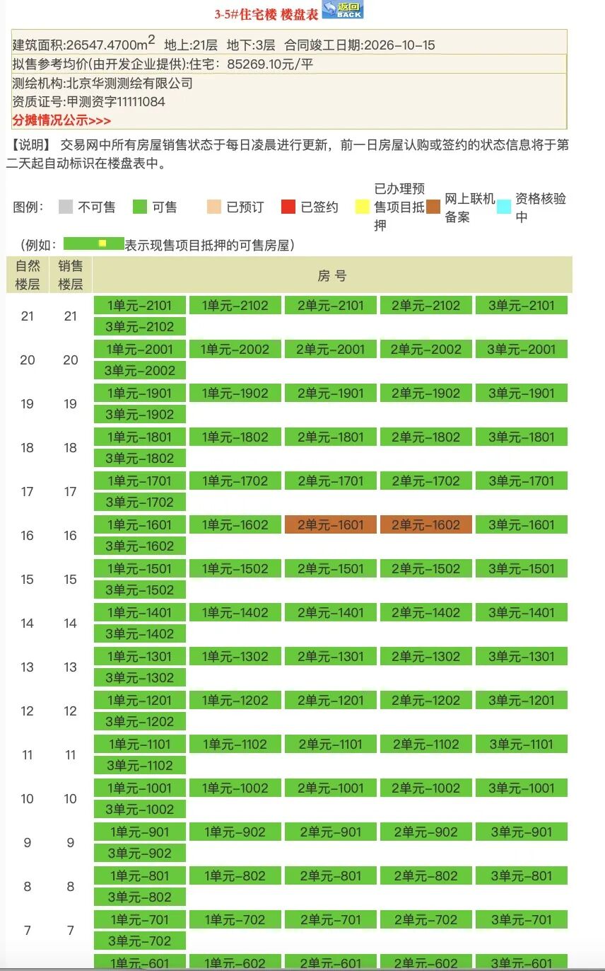 目前,楼王栋仅有2套位于16层的206㎡房源,已网上联机备案了。