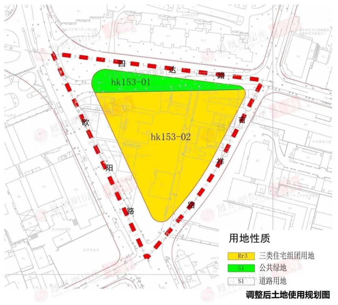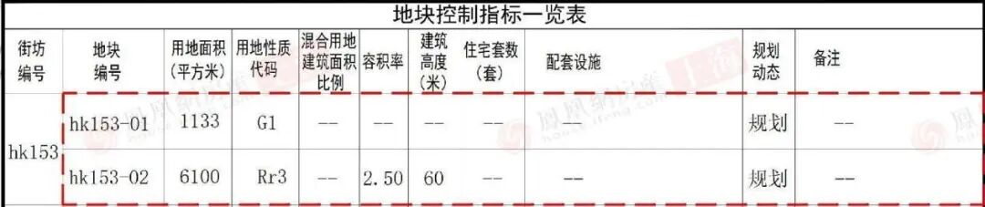 同时,相邻的hk153-01公共绿地(G1)地块边界被微调,面积由840平方米增加至1133平方米。