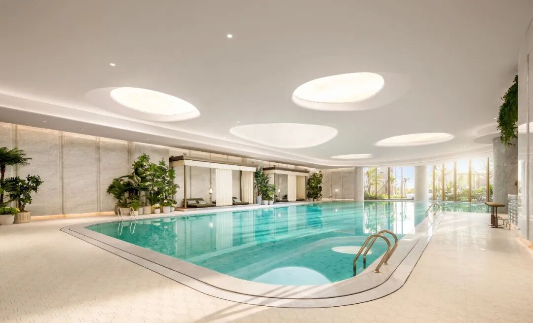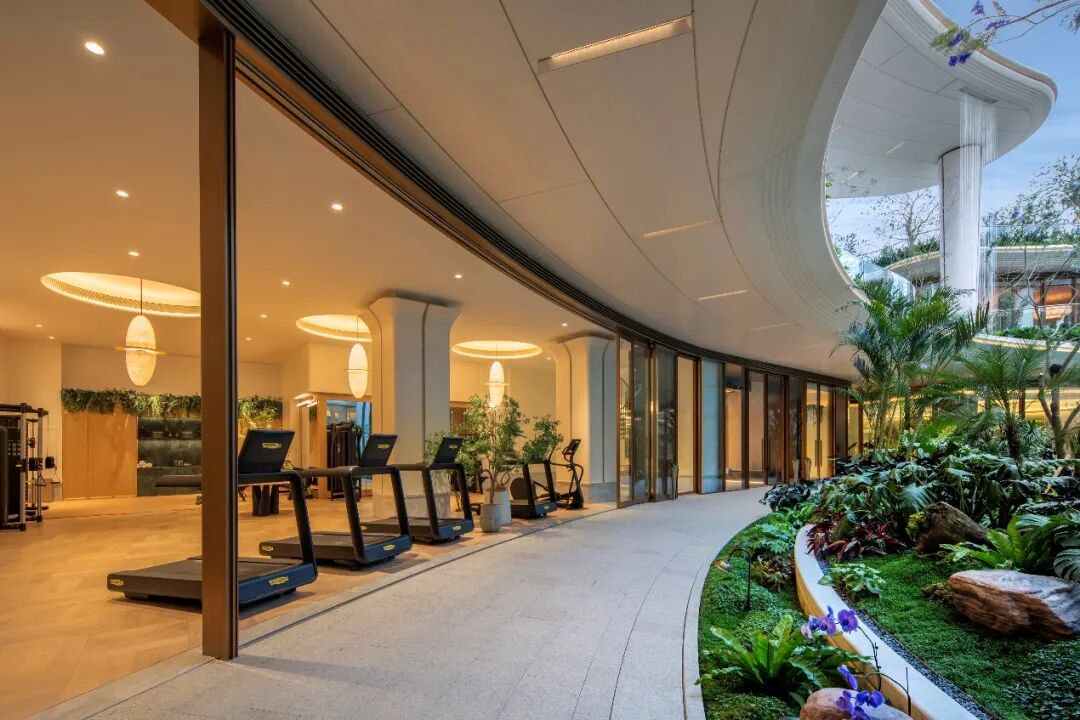 里面包括,提供增值服务的健身房,便于家庭成员结伴同步活动的普拉提和瑜伽室,五星级酒店标准的游泳池,双层(12.9米层高)设计的书吧,私密高端的私宴厅,环境松弛而具有烟火气的茶室。