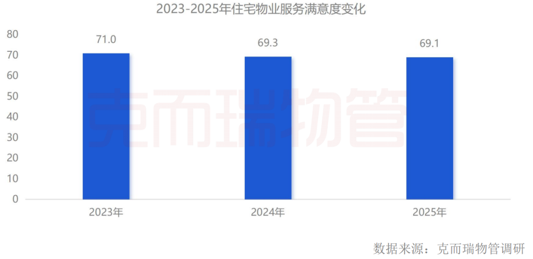 金鼎阅府的遭遇绝非个例,而是全国物业行业的缩影。据克而瑞物管调研数据显示,2025年,全国住宅物业服务满意度为69.1分,较2024年下滑约2个百分点,创下近年新低。