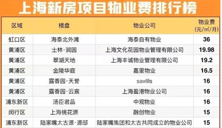 更极端的案例不在少数。海泰北外滩项目面积段370-1500平方米,物业费36元/㎡/月,业主一年物业费最低16万元,最高达65万元。高福云境其物业费同样引人注目,超高层部分物业费为18元/平方米/月,别墅部分为25元/平方米/月。