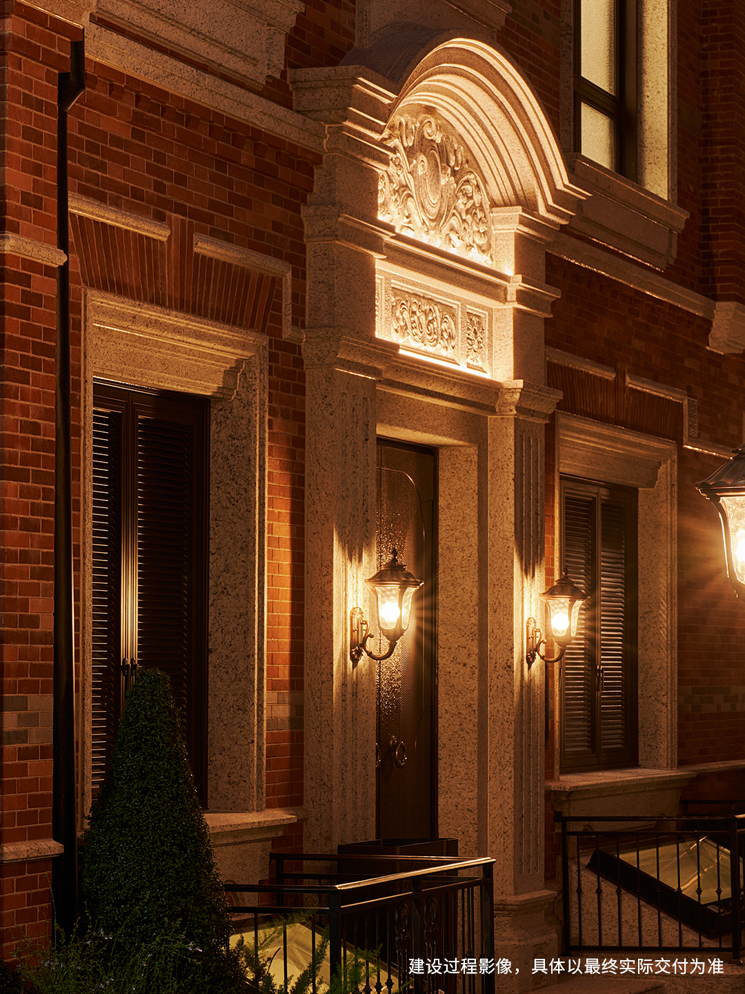 在设计上,项目以“保留改造、更新改建、风貌新织”三重技艺为脉络,既尊重历史肌理,亦融入当代舒适需求,令海派风貌重焕新生。八大定制级匠艺的精研,更将这种对话推向极致——其中的定制级山花造型,取材珍稀玫瑰金麻花岗岩,以整石整雕而成,浑然一体。匠人以刀为笔,于坚硬石面上勾勒出层层叠叠的雕花肌理;这不仅是一朵山花,更是建筑冠冕上的诗眼,是对经典的石材礼赞。从定制金属栏杆的精致纹路,到石材铺装的细腻质感,每一处细节皆沉淀着匠心,将海派建筑的精致与优雅,抒写得淋漓尽致。